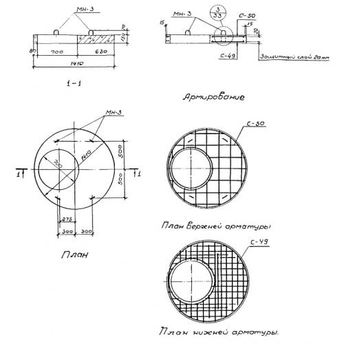 Бетонная крышка колодца ПП 15